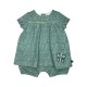 • Green printed light green dress - short sleeves, opening back by snaps.
