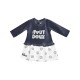 BABY DRESS FRANCELISE Dress Francelise Sucre d'Orge Item details: Anthracite ribbed corduroy dress with message embroidered - back opening by snaps Grey printed sheep on white "skirt" Composition: Dress velvet 68% cotton 28% polyester 4% elasthane "Skirt dress" 100% cotton Size: From 3 to 24 months