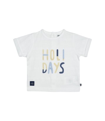 • White T-shirt with fancy text - shorts sleeves and back opening by snaps