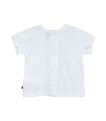 • White T-shirt with monkey illustration - back opening by snaps