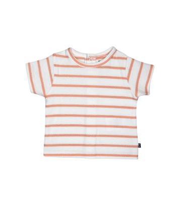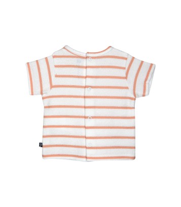 • White T-shirt with stripes peach - short sleeves - back opening by snaps