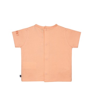 • Peach t-shirt with a dinosaur illustration - shorts sleeves, back opening by snaps